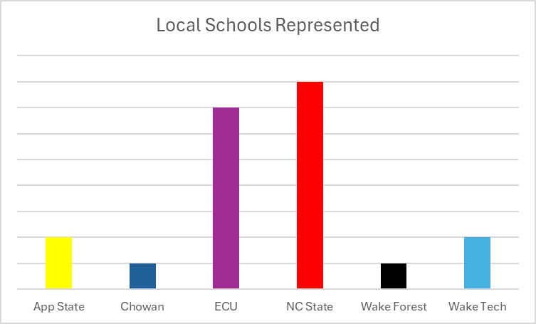 We have strong partnerships with local universities and regularly participate in career fairs at NC State, East Carolina University, Campbell University, Wake Tech, and others. Internships are a critical part of our recruiting strategy, and many of our full-time hires began as interns.